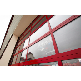 Cette porte de garage sectionnelle Alutech est assemblé en profiles aluminium de section 45 mm. Les panneaux sont remplis de vitrage plexiglass fumé gris foncé permettant de voir à l'extérieur vue de l'intérieur mais ne pas voir l'intérieur vue de l'extérieur. Les accessoires fourni avec la porte de garage vitrée fumé gris foncé sont en acier inoxydable...